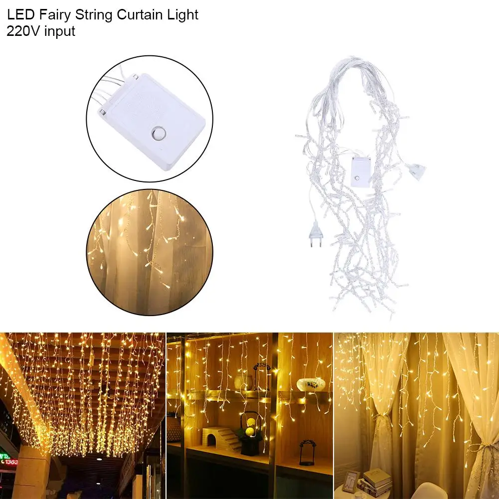 220V 3x0.7M 96 LED Fairy String Light Warm White Curtain Icicle String Light For Valentine's Day We