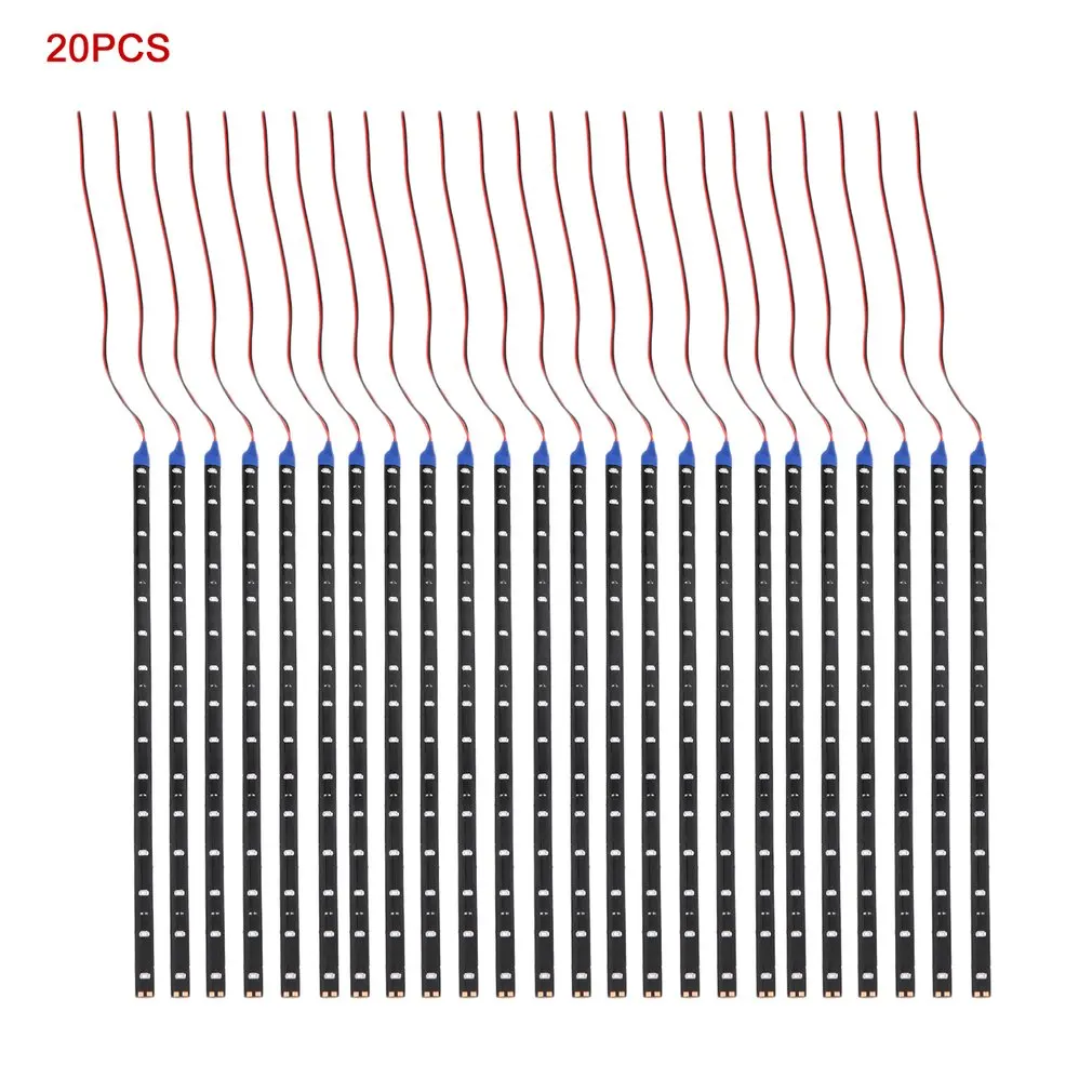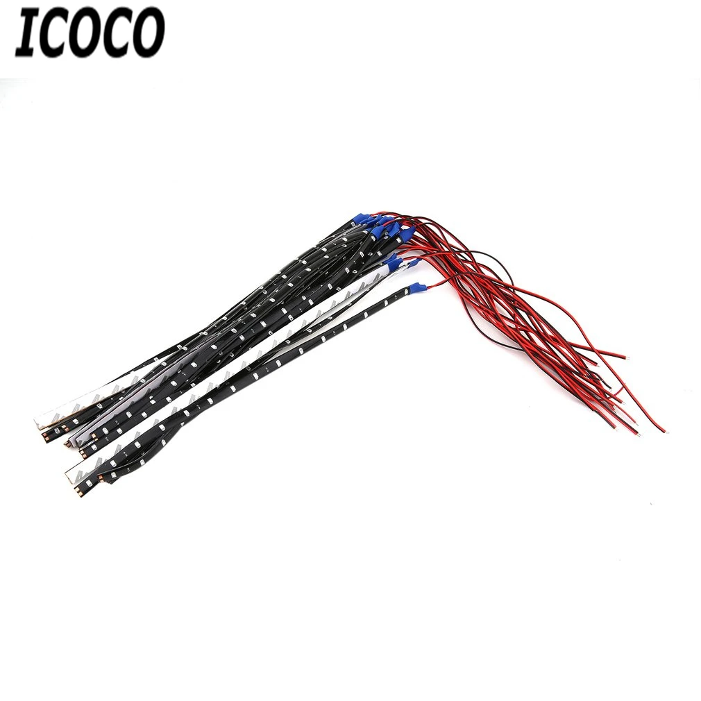 TOP ICOCO 20Pcs 15LED 30cm Car Vehicle Motor Flexible Strip Lights Waterproof Blue Decor Light Strips D