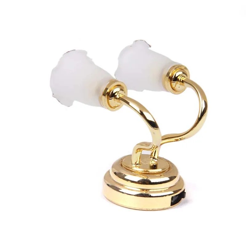 Best Quality Promotion! 1:12 Doll house Miniature LED Mini Double Headed Wall Lamp Light